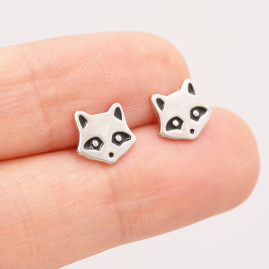 Racoon Stud Earrings in Sterling Silver - Racoon Bear Earrings - Cute Animal Earrings - Fun and Whimsical