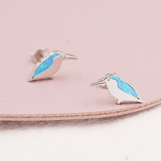 Opal Kingfisher Bird Stud Earrings in Sterling Silver, Blue Opal Bird Earrings, Nature Inspired Design