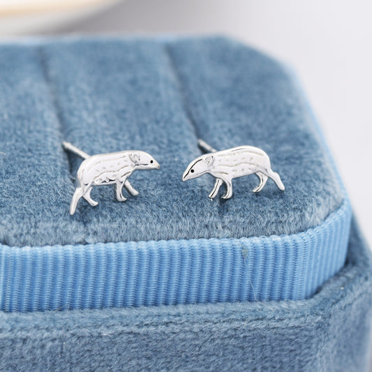 Extra Tiny Baby Tapir Stud Earrings in Sterling Silver, Silver Animal Earrings, Nature Inspired Jewellery