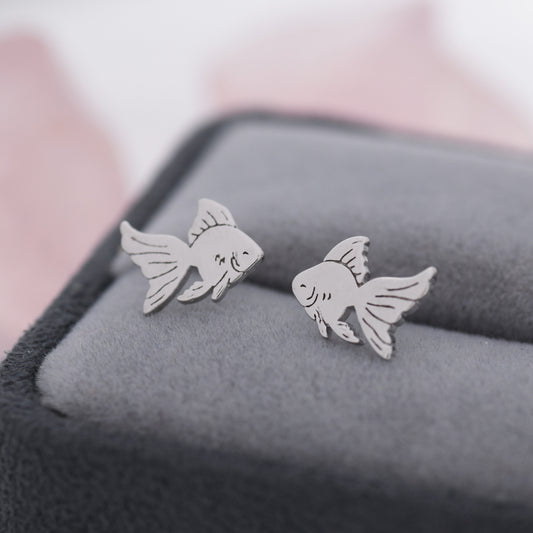 Goldfish Stud Earrings in Sterling Silver, Silver or Gold, Fish Earrings, Nature Inspired Animal Earrings