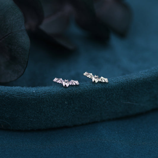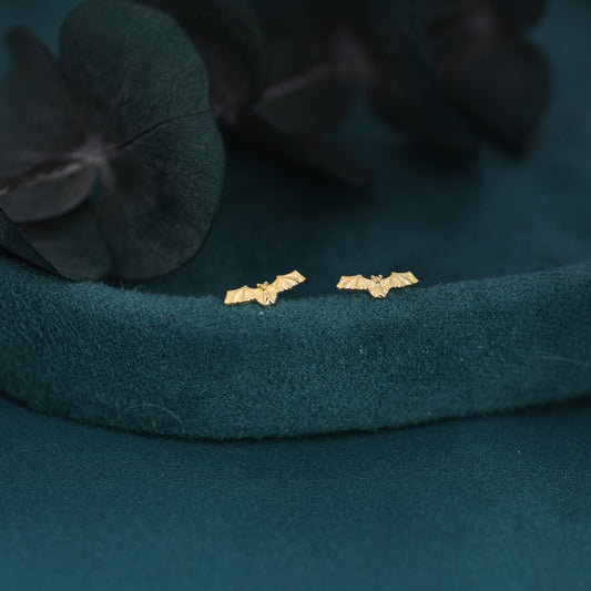 Extra Tiny Bat Stud Earrings in Sterling Silver, Silver or Gold, Stacking Earrings, Animal Earrings