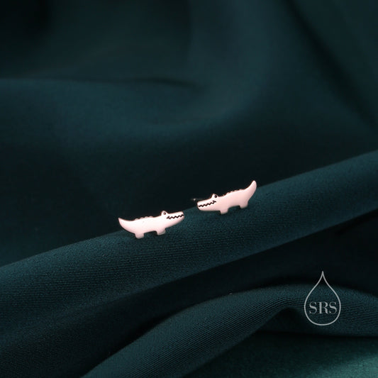 Super Cute Crocodile Alligator Stud Earrings in Sterling Silver - Animal Stud Earrings - Cute Gator, Caiman Jewellery
