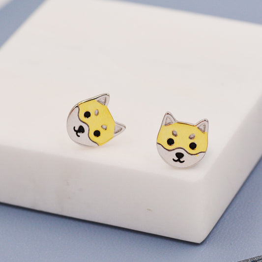 Japanese Shiba Inu Dog Stud Earrings in Sterling Silver - Dog Lover Earrings - Cute Animal Earrings - Cute, Fun, Whimsical