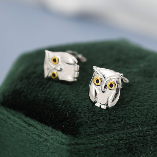 Barn Owl Stud Earrings in Sterling Silver, Gold and Rose Gold. Owl Bird Earrings, Nature Inspired Animal Earrings