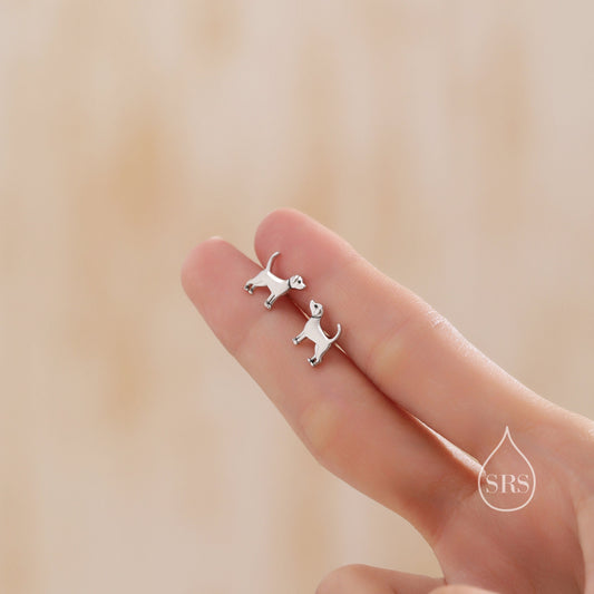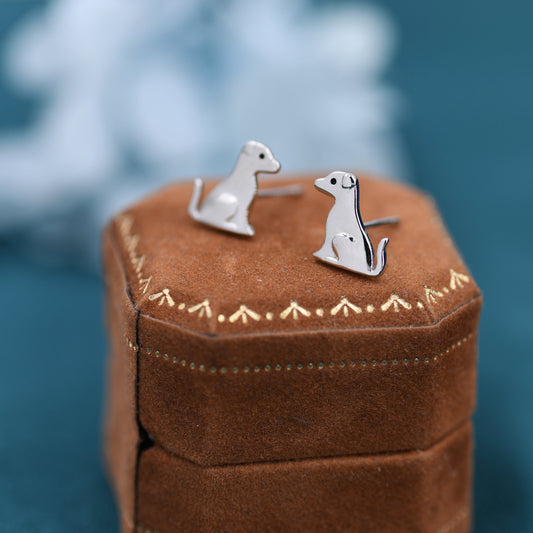 Cute Puppy Dog Stud Earrings in Sterling Silver, Sitting Puppy Earrings, Nature Inspired Animal Earrings, Pet, Terrier, Jack Russell