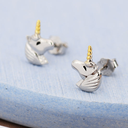 Unicorn Stud Earrings in Sterling Silver, Cute Earrings For Girls, Animal Earrings