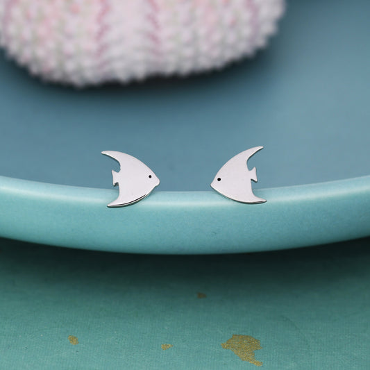 Angelfish Stud Earrings in Sterling Silver, Tropical Fish Earrings, Nature Inspired Animal Earrings