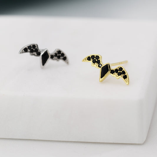 Black CZ Crystal Bat Stud Earrings in Sterling Silver, Silver or Gold, Rhombus Bat Earrings, Stacking Earrings, Animal Earrings