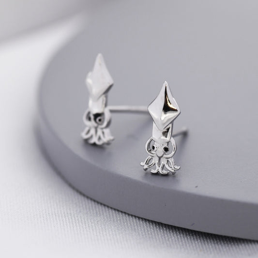 Squid Stud Earrings in Sterling Silver, Squid Fish Earrings, Nature Inspired Animal Earrings, Ocean Animal