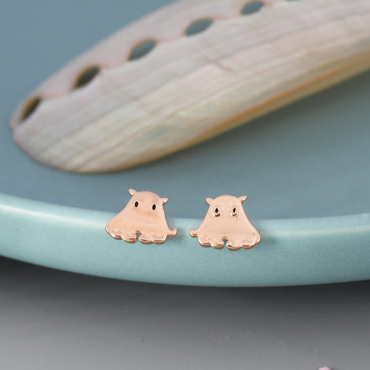Umbrella Octopus Stud Earrings in Sterling Silver, Silver or Rose Gold, Ocean Animal Earrings, Nature Inspired