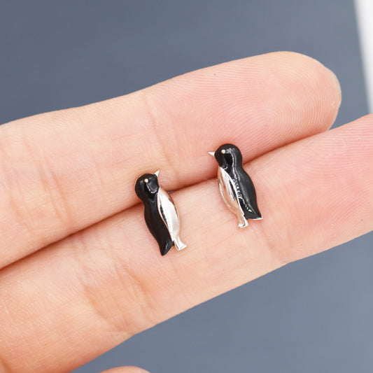 Penguin Stud Earrings in Sterling Silver, Hand Painted Enamel, Bird Earrings, Penguin Earrings, Animal Earrings, Nature Inspired