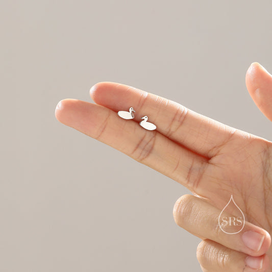 Swimming Duck Stud Earrings in Sterling Silver, Silver or Gold or Rose Gold, Duck Earrings, Bird Earrings, Nature Inspired Animal Earrings