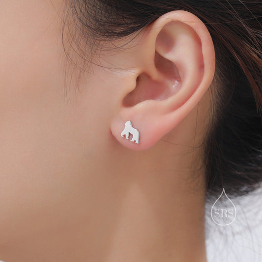 Gorilla Stud Earrings in Sterling Silver, Silver or Gold, Gorilla Earrings, Nature Inspired Animal Earrings