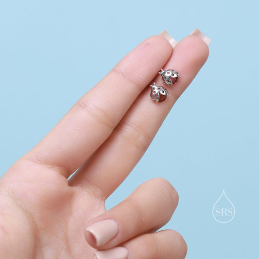 Tiny CZ Labybird Stud Earrings in Sterling Silver, Silver or Gold, Ladybug Earrings, Cute Red Ladybird Earrings