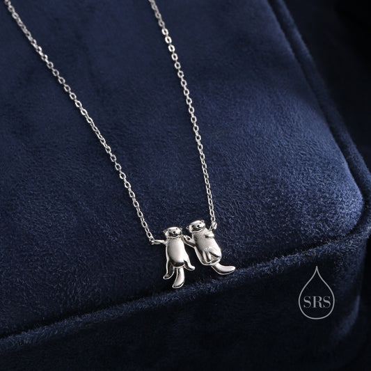 Tiny Otter Holding Hands Pendant Necklace in Sterling Silver, Silver or Gold or Rose Gold, Nature Inspired Animal Necklace