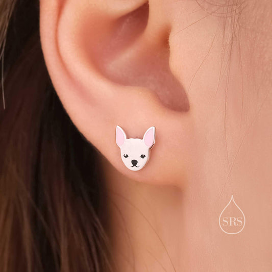 Tiny Chihuahua Dog Stud Earrings in Sterling Silver, Hand Painted Enamel, Sterling Silver Chihuahua Dog Earrings, Pet Earrings