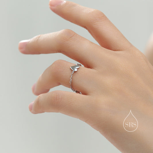 Sterling Silver Heart Soft Ring, Adjustable Size Heart Chain Ring, Silver or Gold Sparkling Silver Ring, Soft chain Ring in Sterling Silver