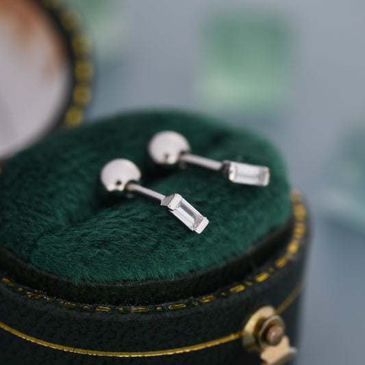 Extra Tiny Baguette CZ Screw Back Earrings in Sterling Silver, Silver or Gold, Geometric CZ Earrings, Stacking Earrings, Barbell Earrings
