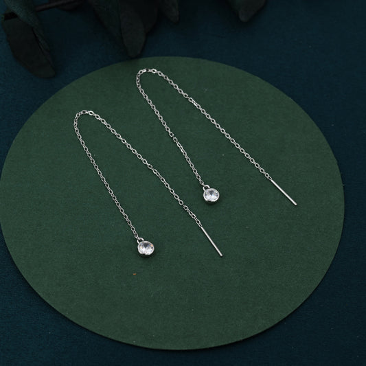 CZ Dot Threader Earrings in Sterling Silver, Silver or Gold, Minimalist Double Piercing Ear Threaders, April Birthstone, Very Long Threaders