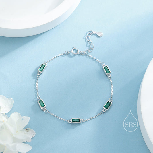 Baguette CZ Satellite Bracelet in Sterling Silver, Silver or Gold, Five Baguette CZ Bracelet, Chain Bracelet, Delicate CZ Bracelet