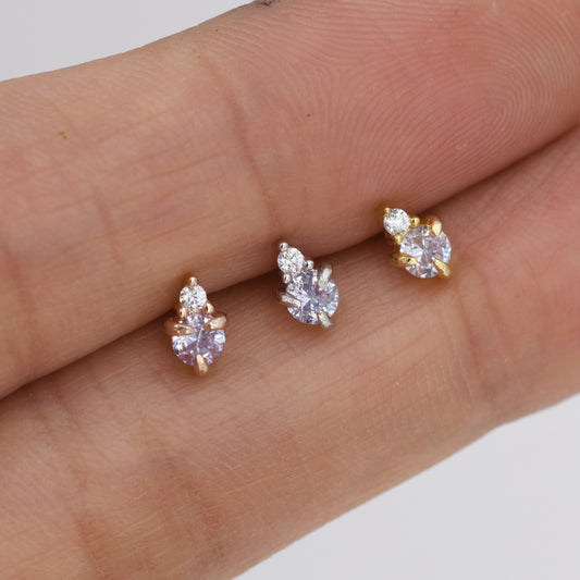 Sterling Silver Alexandrite Blue Purple CZ Stud Earrings, 3mm June Birthstone CZ Earrings, Silver, Gold or Rose Gold, Stacking Earrings