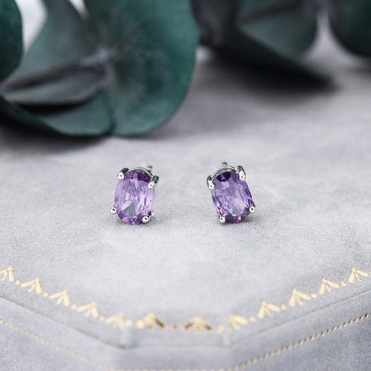 Amethyst Purple Oval CZ Stud Earrings in Sterling Silver, Available in Two Sizes, Oval Cut Crystal Earrings, February Birthstone