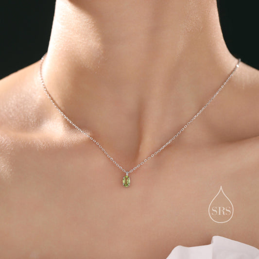 Tiny Genuine Peridot Crystal Oval Pendant Necklace in Sterling Silver, 4x6mm Tiny Oval Natural Peridot Necklace, August Birthstone