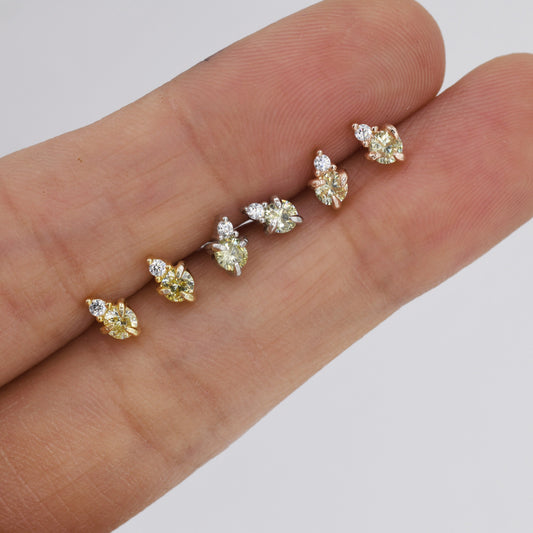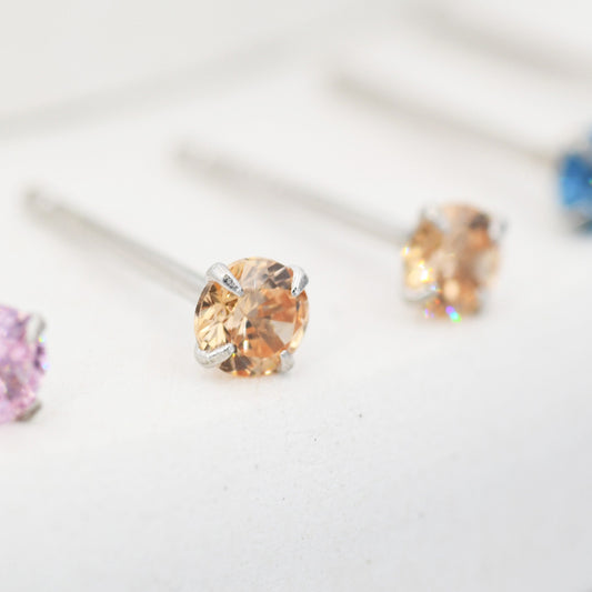 Sterling Silver November Birthstone Earrings, Citrine Yellow Stud Earrings, Extra Tiny Crystal Stud, 3mm Birthstone CZ Earrings