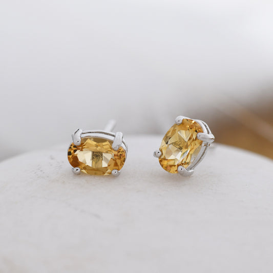 Genuine Citrine Crystal Stud Earrings in Sterling Silver, Natural Yellow Citrine Oval Stud Earrings, November Birthstone