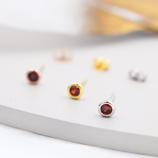 Sterling Silver Garnet Red Stud Earrings, 4mm January Birthstone CZ Earrings, Silver, Gold or Rose Gold, Stacking Earrings