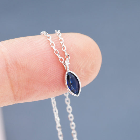 Extra Tiny Sapphire Blue Marquise CZ Necklace in Sterling Silver, Silver or Gold, Single Marquise Necklace, Diamond CZ, September Birthstone
