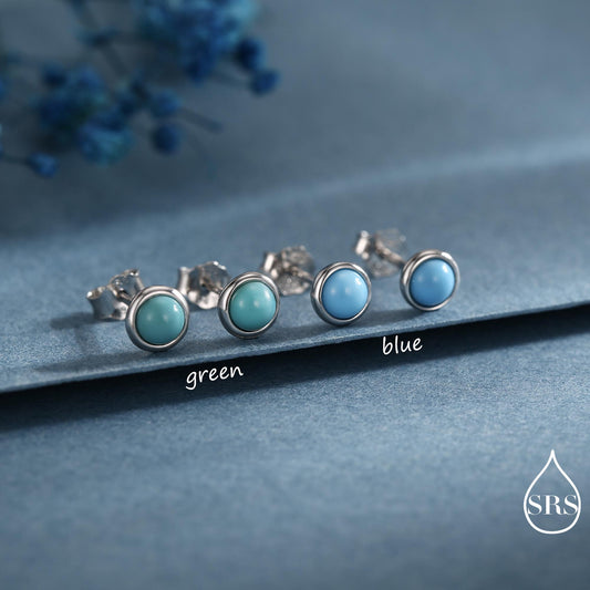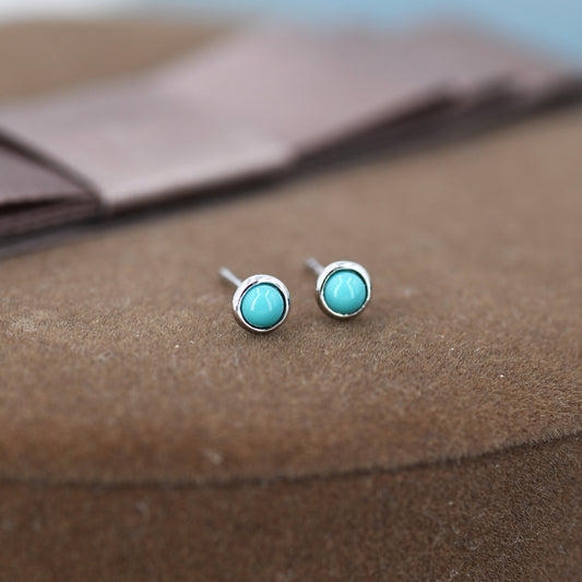 Sterling Silver Turquoise Stud Earrings, 3 or 4mm, Blue or Green Turquoise Gemstone, Bezel, Minimalist December Birthstone