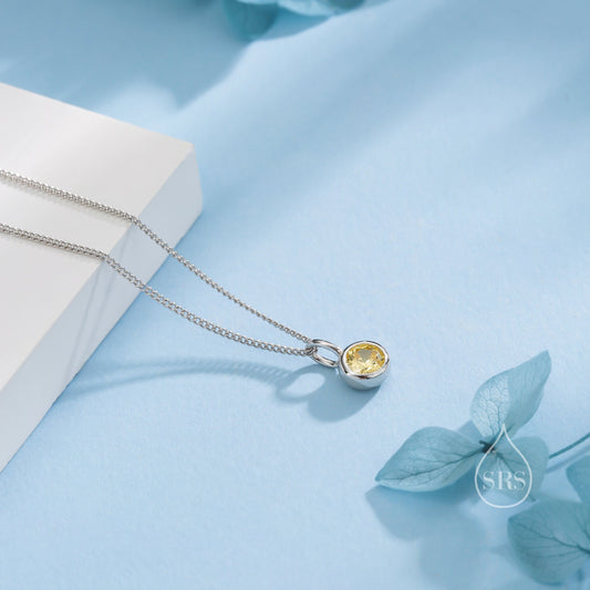Citrine Yellow CZ Bubble Pendant Necklace in Sterling Silver, Silver or Gold or Rose Gold, 1 Ct Zircon Bezel Necklace, November Birthstone