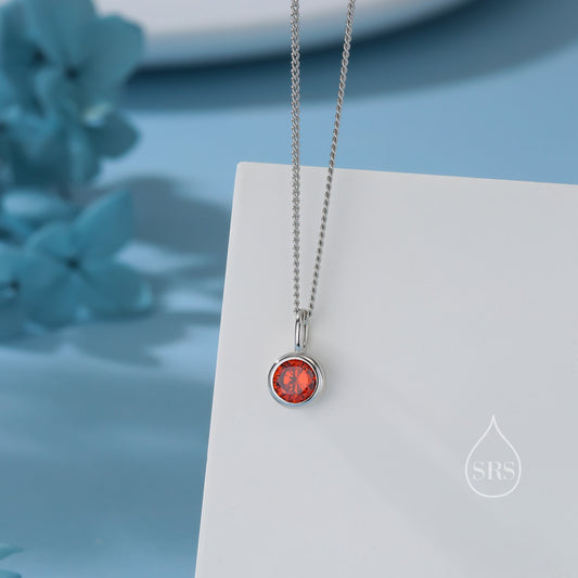 Garnet Red CZ Bubble Pendant Necklace in Sterling Silver, Silver or Gold or Rose Gold, 1 Ct Zircon Bezel Necklace, January Birthstone
