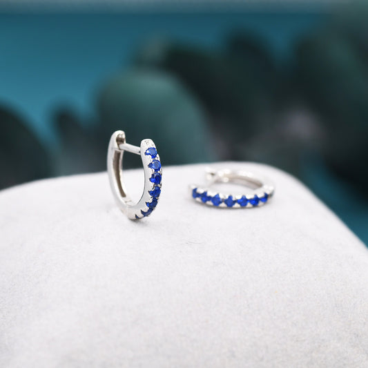 Sapphire Blue CZ Huggie Hoops in Sterling Silver, Silver or Gold, Minimalist Hoop Earrings, 8mm Hoops, Blue Hoops, September Birthstone