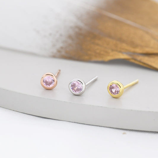Sterling Silver Tourmaline Pink CZ Stud Earrings, 4mm October Birthstone CZ Earrings, Silver, Gold or Rose Gold, Stacking Earrings