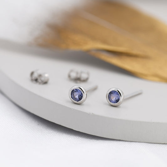 Sterling Silver Tanzanite Blue CZ Stud Earrings, 4mm December Birthstone CZ Earrings, Silver, Gold or Rose Gold, Stacking Earrings