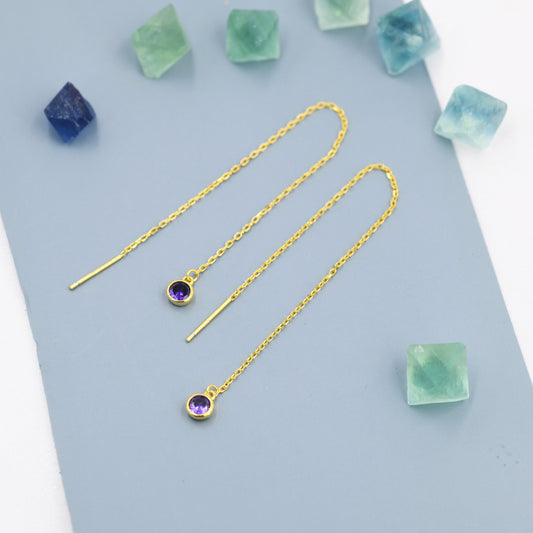 Amethyst Purple CZ Dot Threader Earrings in Sterling Silver, Silver or Gold, Minimalist Double Piercing Ear Threaders, February Birthstone