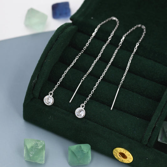 CZ Dot Threader Earrings in Sterling Silver, Silver or Gold, Minimalist Double Piercing Ear Threaders, April Birthstone, Very Long Threaders