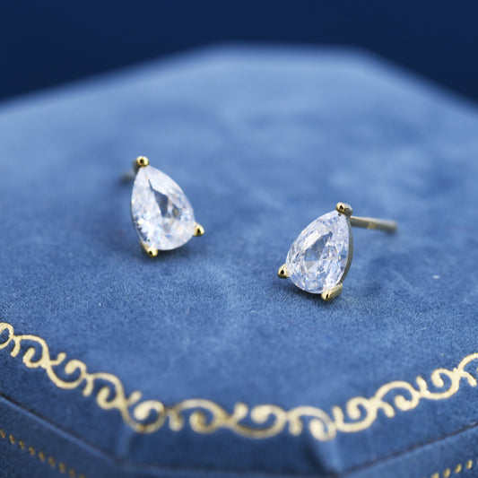 Sterling Silver Pear Cut CZ Earrings, Droplet Diamond Earrings, April Birthstone CZ Earrings, Silver, Gold or Rose Gold