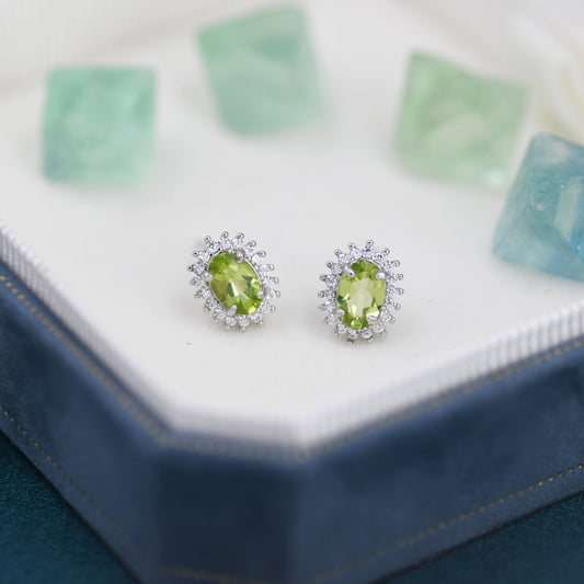 Genuine Peridot Crystal Stud Earrings in Sterling Silver, Natural Green Peridot Oval Stud Earrings, August Birthstone