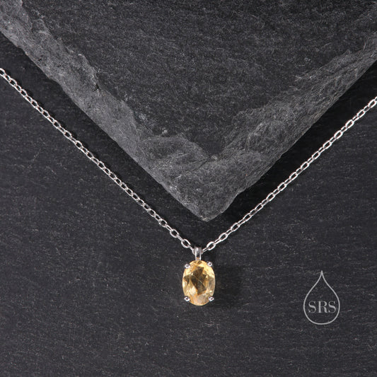 Extra Tiny Genuine Citrine Crystal Oval Pendant Necklace in Sterling Silver, 5x7mm Tiny Oval Citrine Necklace, November Birthstone