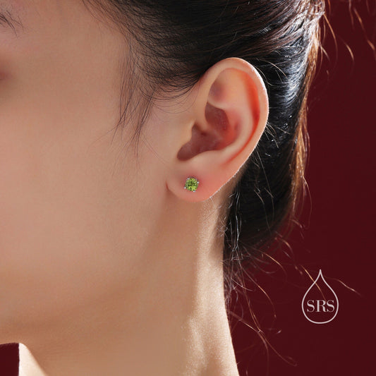 Sterling Silver Natural Peridot Stud Earrings, 4mm Prong Set, Genuine Peridot Gemstone Stud, Minimalist Style, August Birthstone