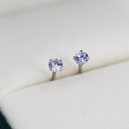 June Birthstone Earrings, Alexandrite Stud Earrings in Sterling Silver, Extra Tiny Crystal Stud, 3mm Birthstone CZ Earrings