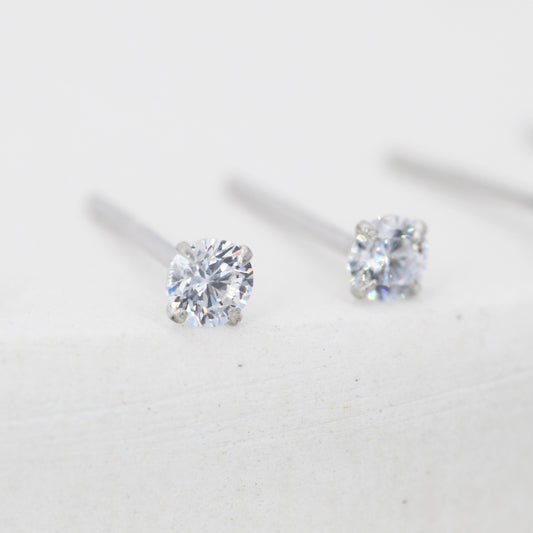 April Birthstone, Diamond Stud Earrings in Sterling Silver, Extra Tiny Crystal Stud, 3mm Birthstone CZ Earrings