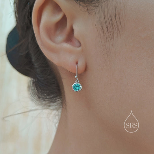 Birthstone CZ Drop Earrings in Sterling Silver, Cubic Zirconia Birthstone Hook Earrings, Silver, Gold or Rose Gold, Minimal Earrings