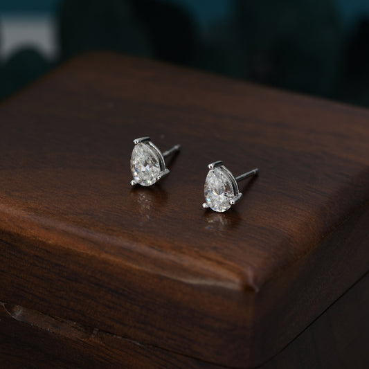 Sterling Silver Pear Cut Moissanite Earrings, 4x6mm Droplet Moissanite Diamond Earrings, April Birthstone Earrings