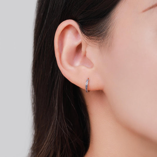 2mm Sapphire Blue CZ Huggie Hoop Earrings in Sterling Silver, Silver or Gold, Half Hoop, Open Hoop, Pull Through, September Birthstone