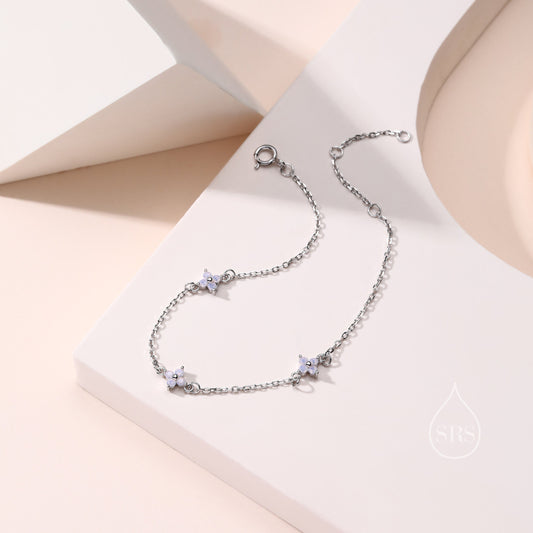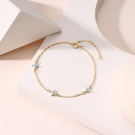 Tiny CZ Flower Bracelet in Sterling Silver, Silver or Gold , Available in 4 Colours, Silver or Gold, Marquise Flower Bracelet