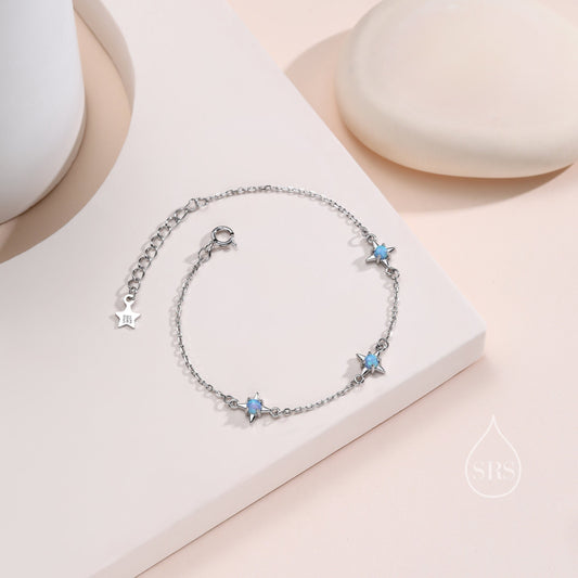 Starburst Charm Bracelet in Sterling Silver with Opal or Moonstone, Silver, Gold or Rose Gold, North Star Bracelet, Sunburst Bracelet